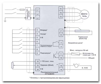 * Номинальная мощность. Уточните выбор по номинальному току двигателя и максимальному току в конкретном применении.